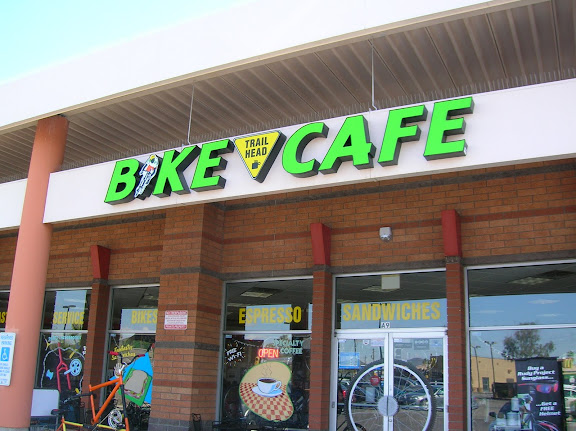I started my ride off right with Aunt Chilada’s for lunch. Then over to Trailhead Bike Cafe for some window shopping and a few supplies: Nuun and a Chocolate Chip Muffin to go.
